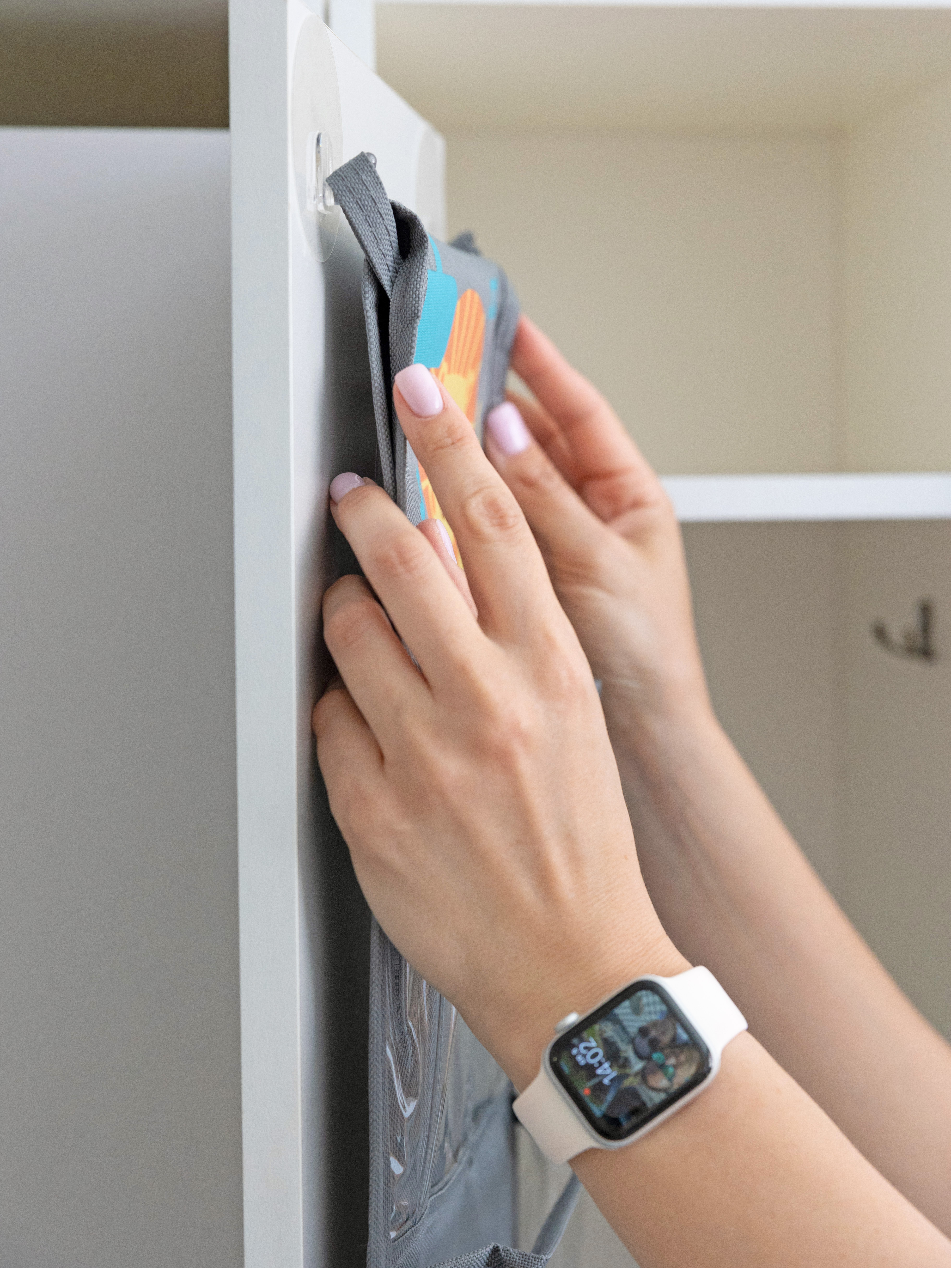 Кармашки можно закрепить на липучке или резинке. Если конструкция дверцы нестандартная, любую нашу модель можно закрепить на крючках — просто и надёжно.