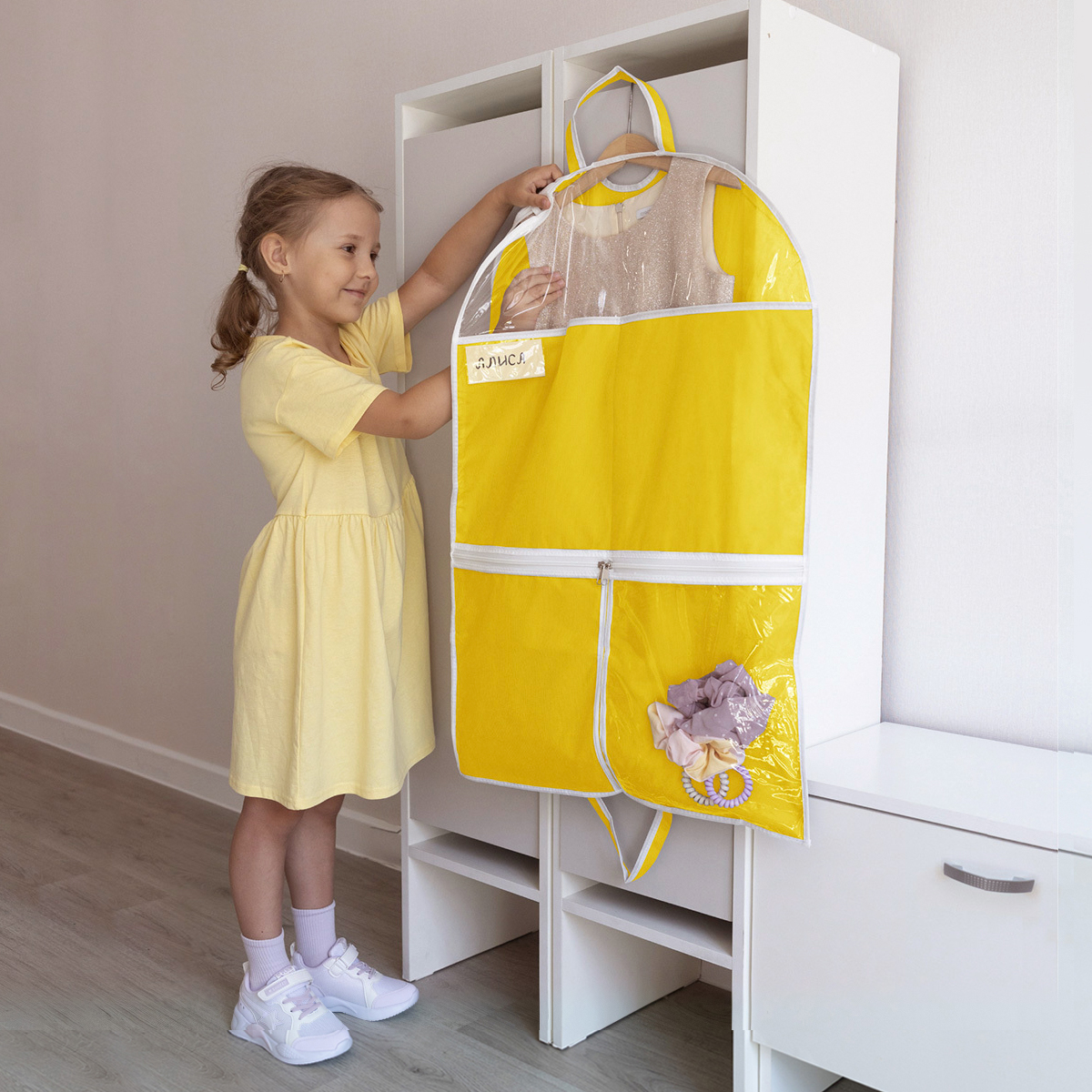 Чехол для одежды поможет аккуратно хранить концертные платья, костюмы и нарядную одежду ребёнка.