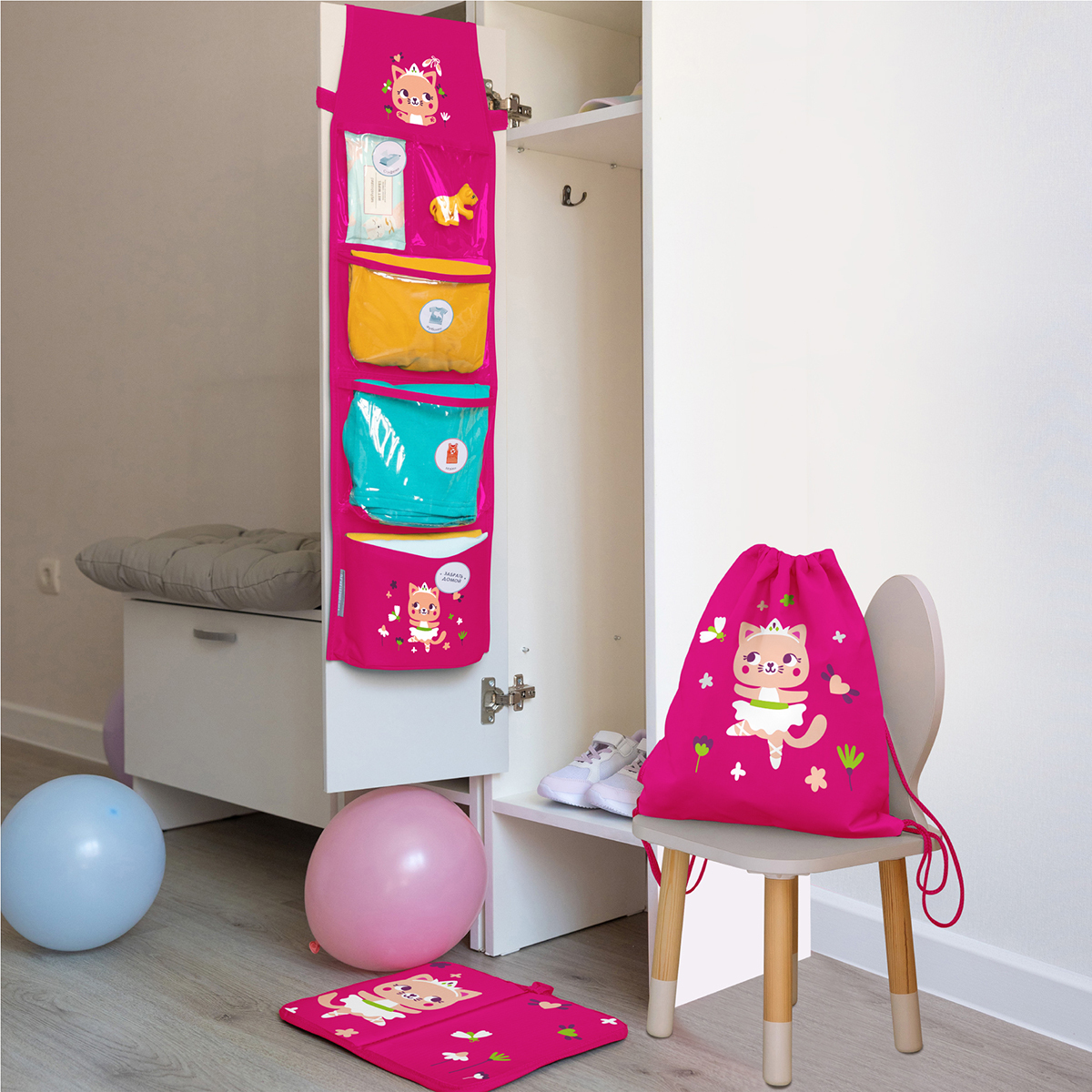 Кармашки для детского сада, на липучке. Кошечка балерина