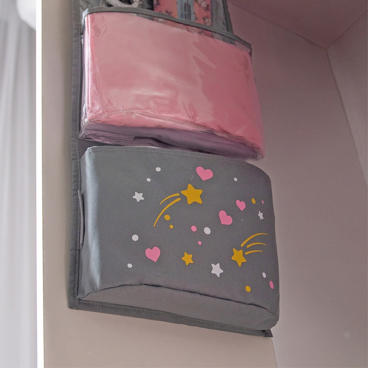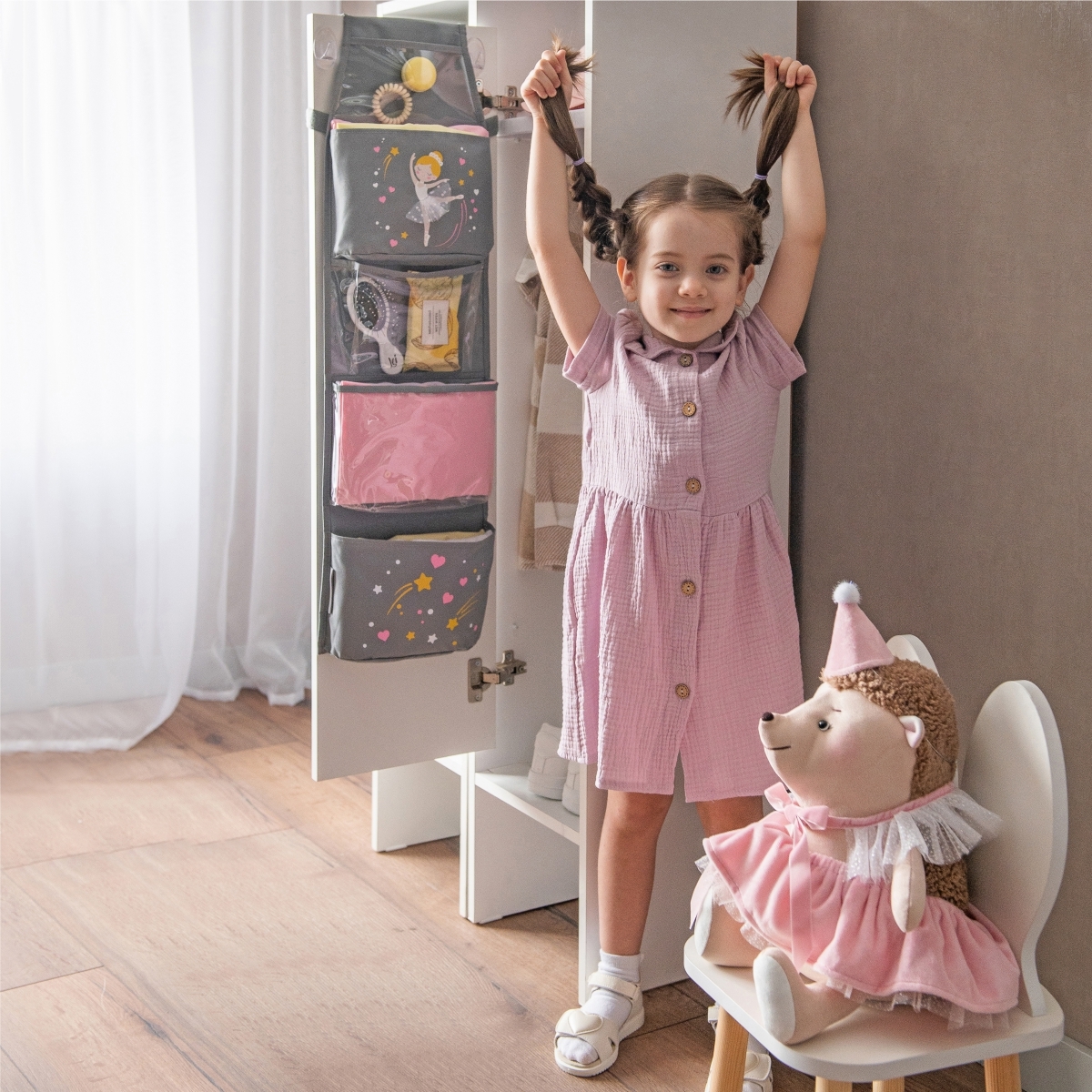 Кармашки из плотного материала помогают ребёнку аккуратно хранить вещи и с интересом поддерживать порядок.