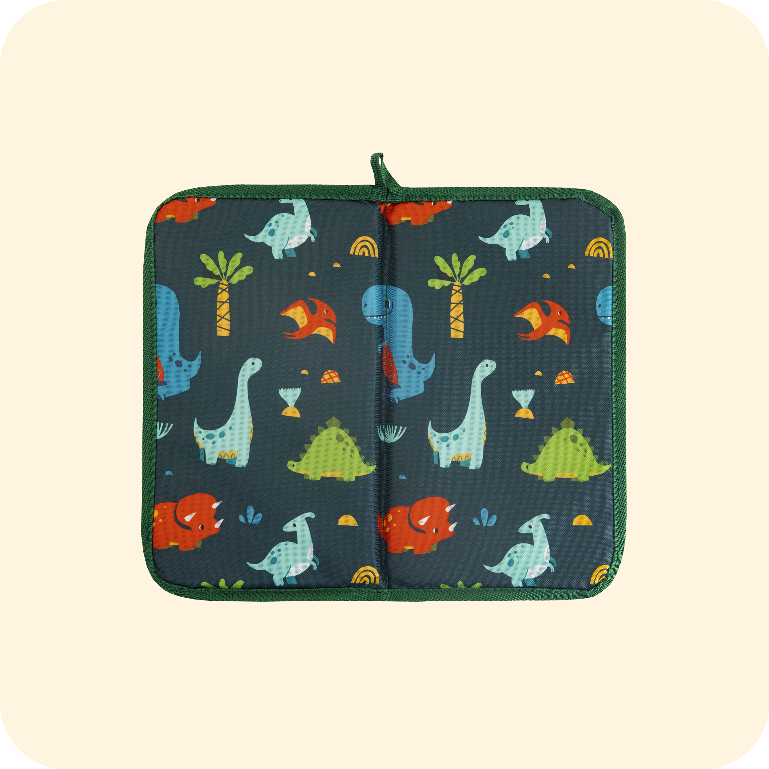 Коврик не промокает, легко очищается и складывается пополам — удобно брать с собой и хранить.