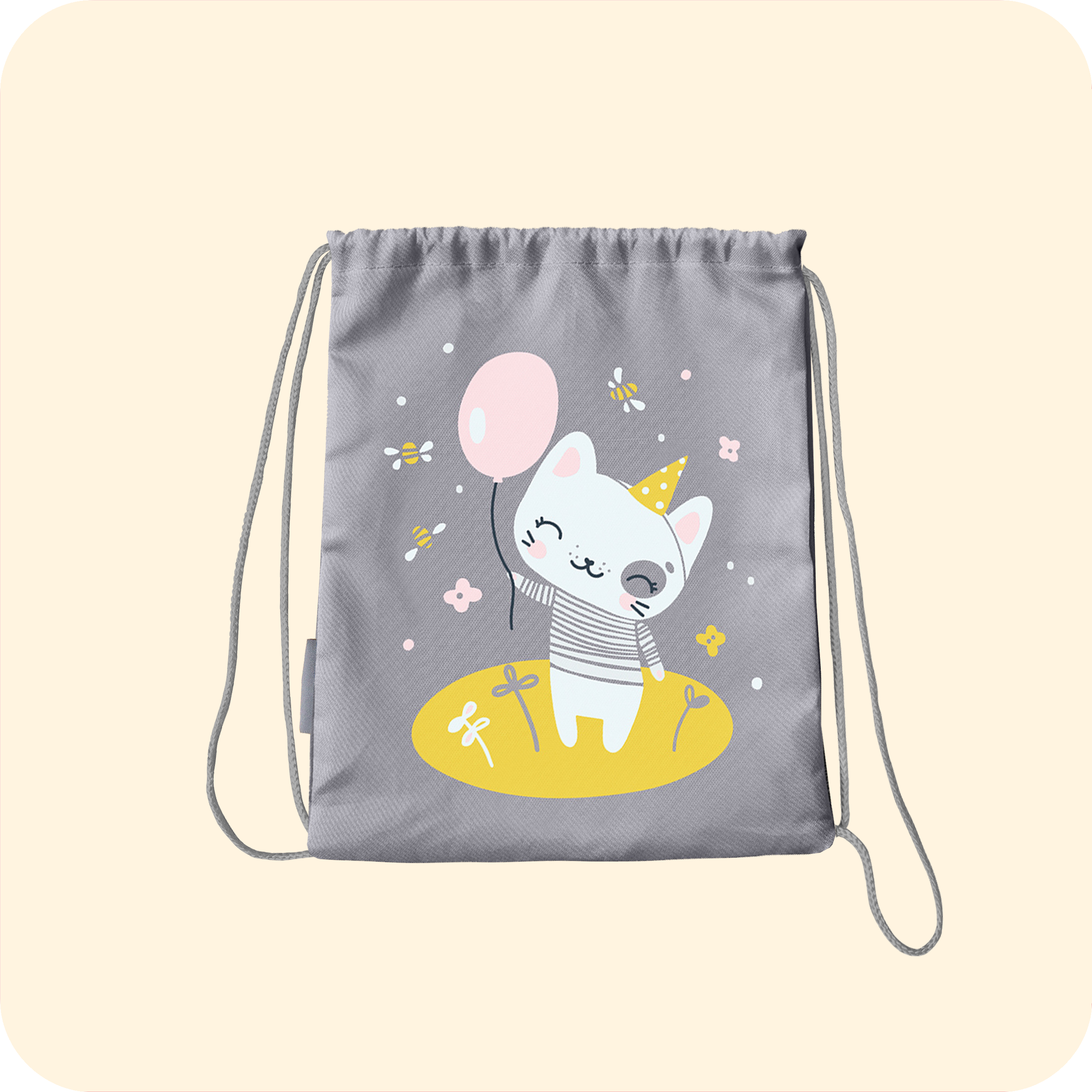Сделан из плотной ткани, легко очищается, не имеет запаха, не выцветает и долго сохраняет аккуратный вид. Мешок вмещает до 10 литров. Простая конструкция с одним отделением и шнуровкой — малыш справится сам.