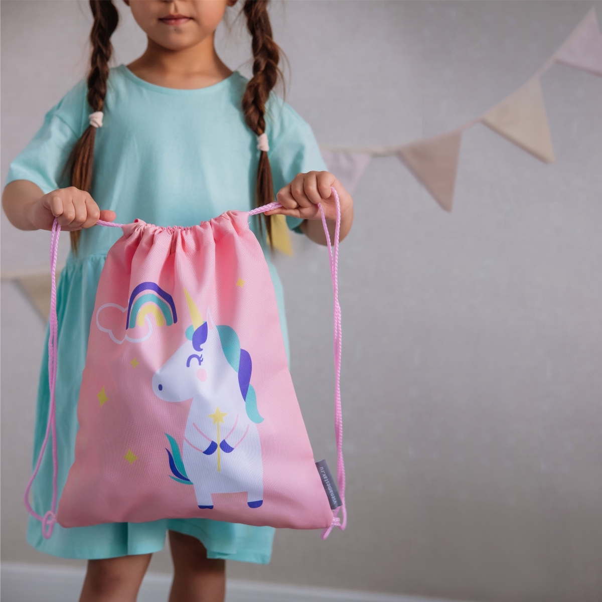 Набор для детского сада: кармашек, коврик, мешок. Единорог розовый