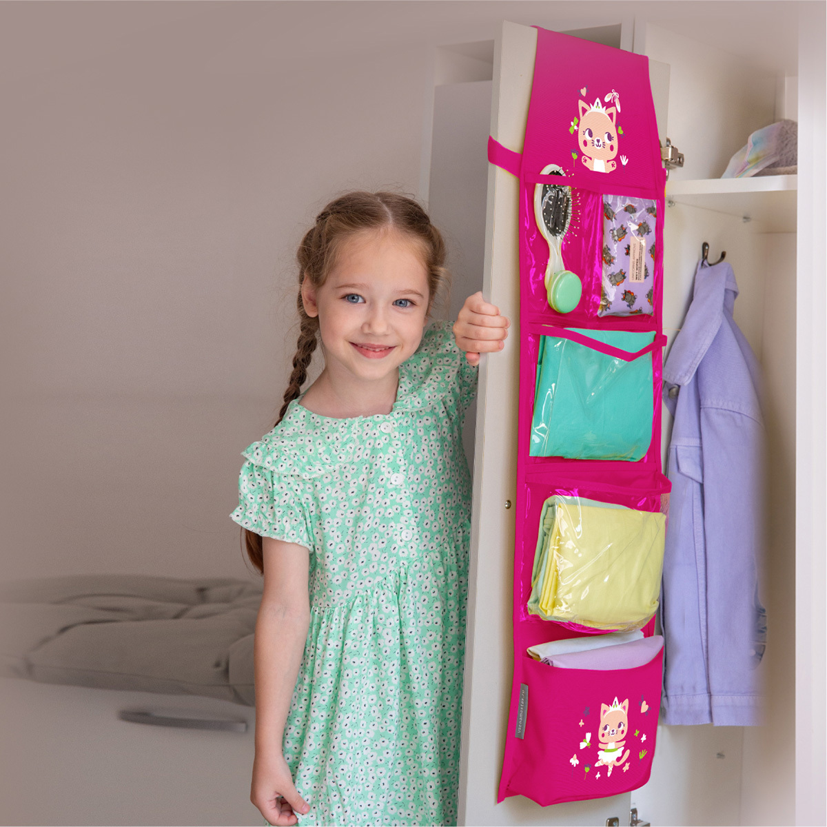 - Органайзер с 5 отделениями и карманом для фото или имени, крепление на резинку и петли