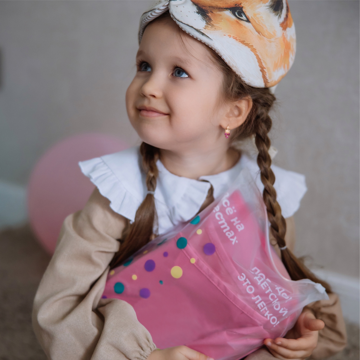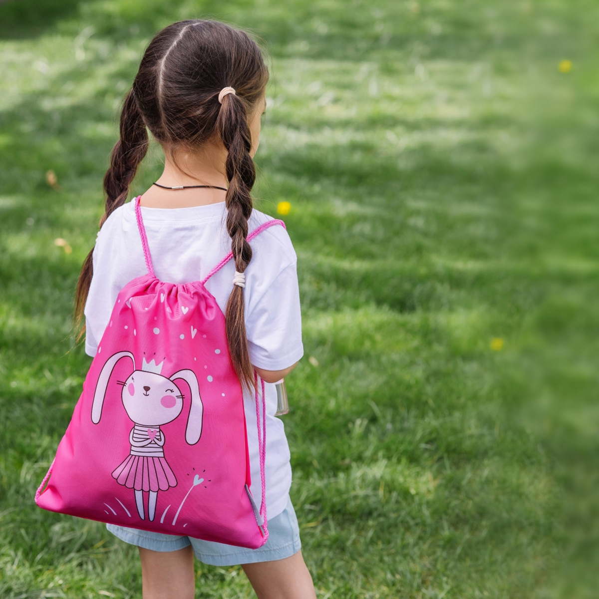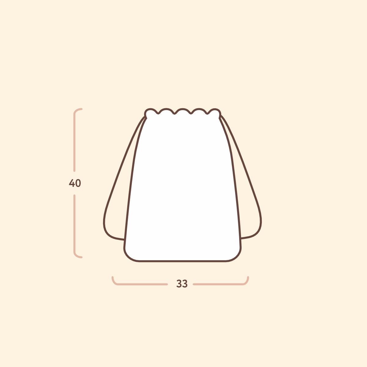 Мешок из прочной ткани вмещает до 10 л, застёгивается на шнуровку и прост в использовании — ребёнок легко справится сам.