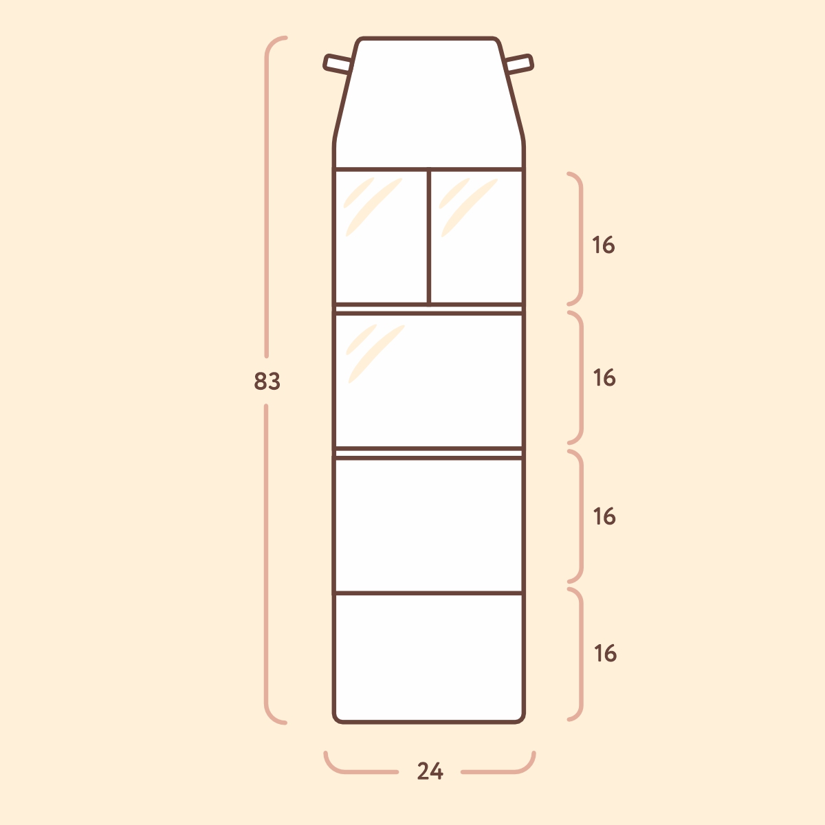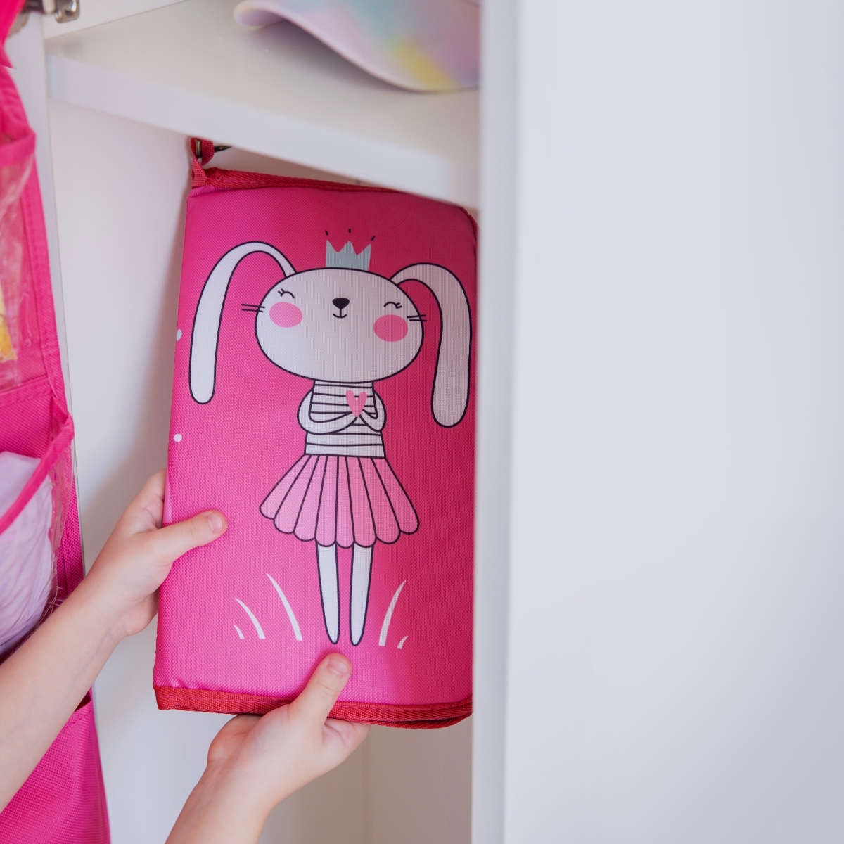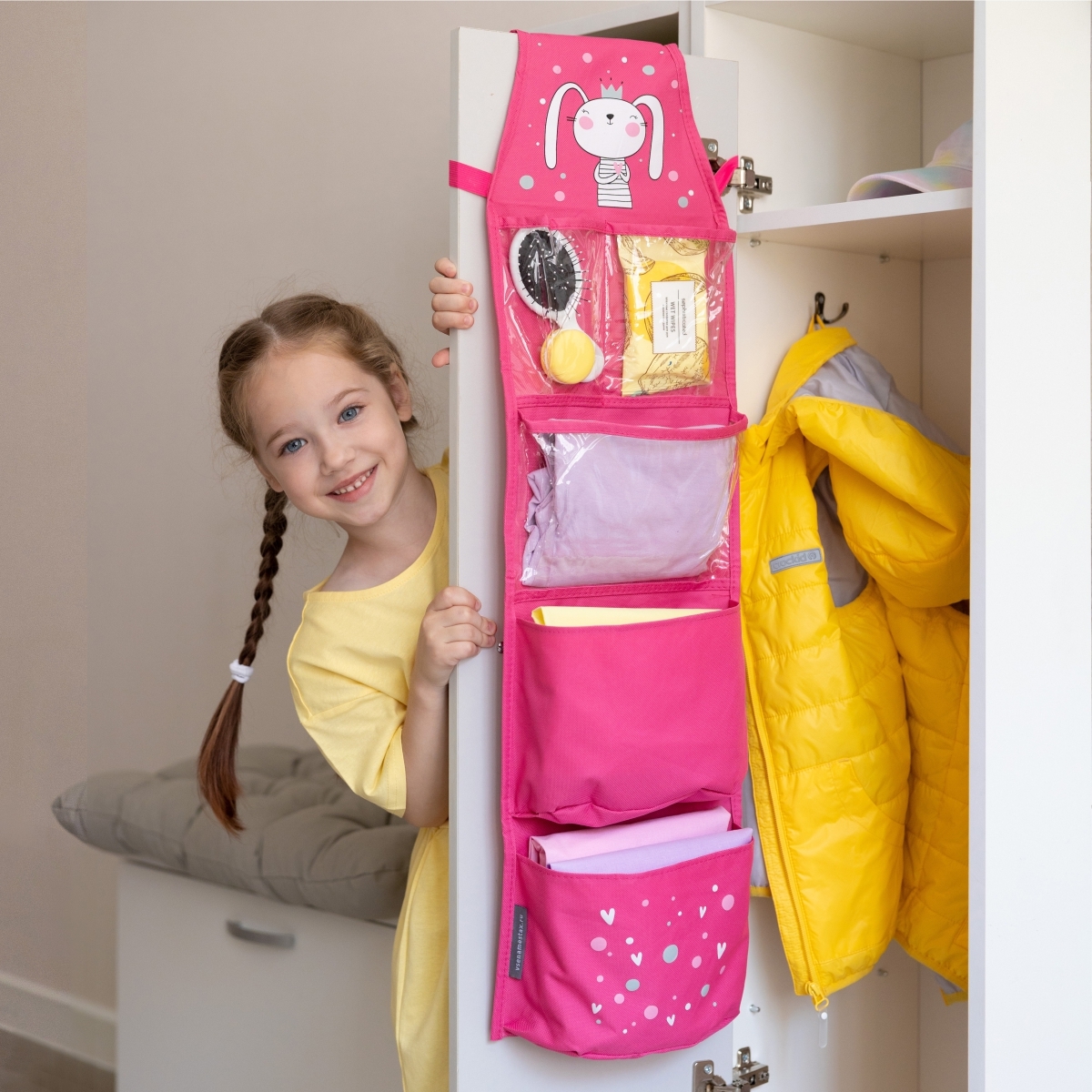 Органайзер помогает аккуратно хранить вещи — 5 вместительных отделений, внешний карман для фото или имени и два способа крепления: на резинку или петли.
