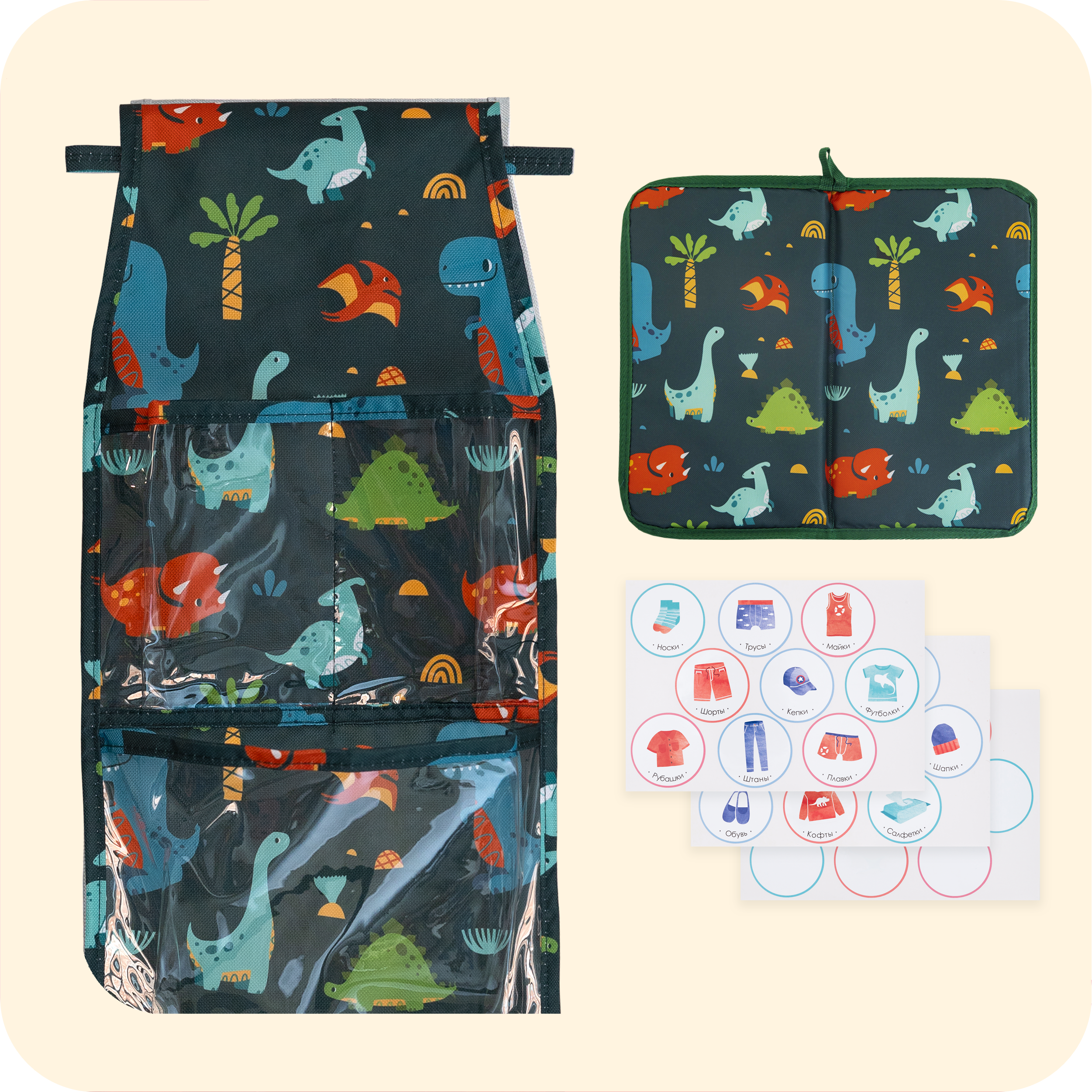 Набор для детского сада: кармашек, коврик, наклейки. Динозавры принт