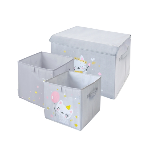 Коробка с крышкой 50х35 Львенок в машинке (серый)