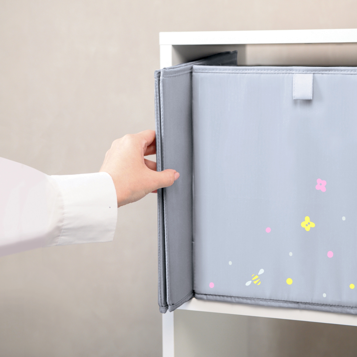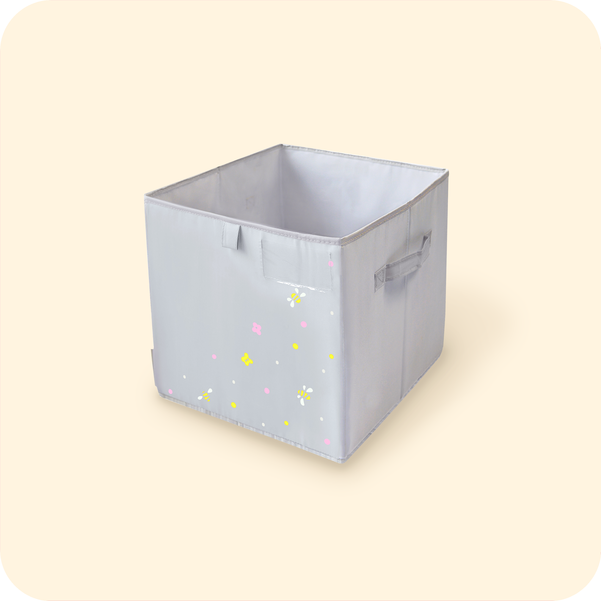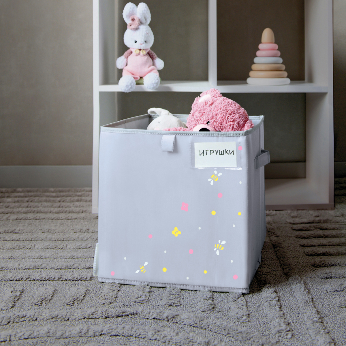 Плотные стенки с пластиковыми вставками и жёсткое дно сохраняют форму — коробка не провисает и выглядит опрятно даже при ежедневном использовании.
