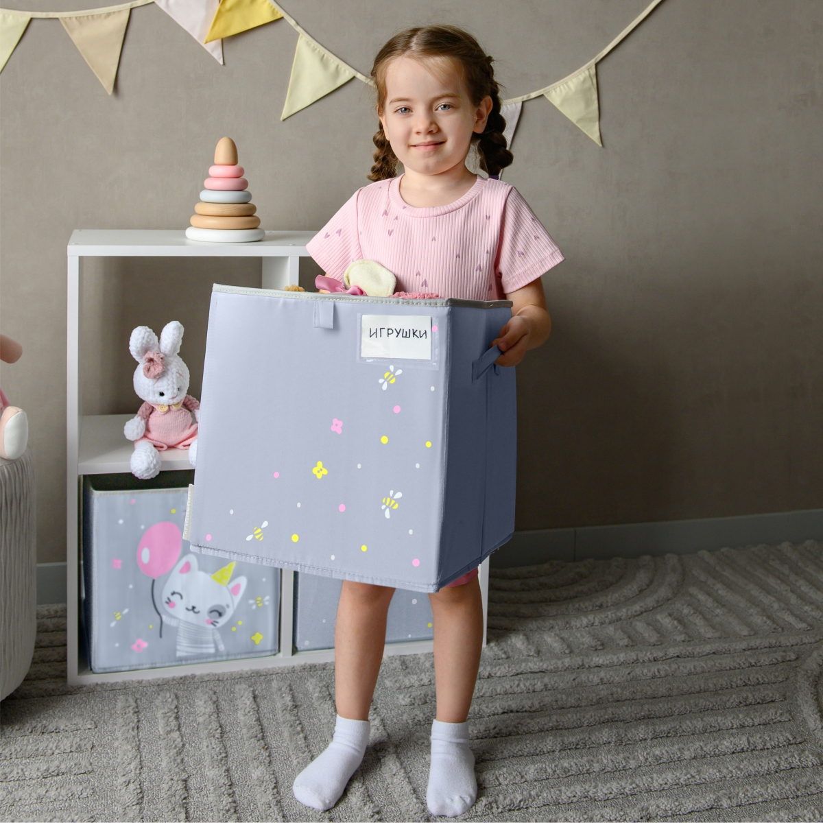 Удобная и прочная коробка поможет аккуратно хранить игрушки, одежду, книги и канцелярию.