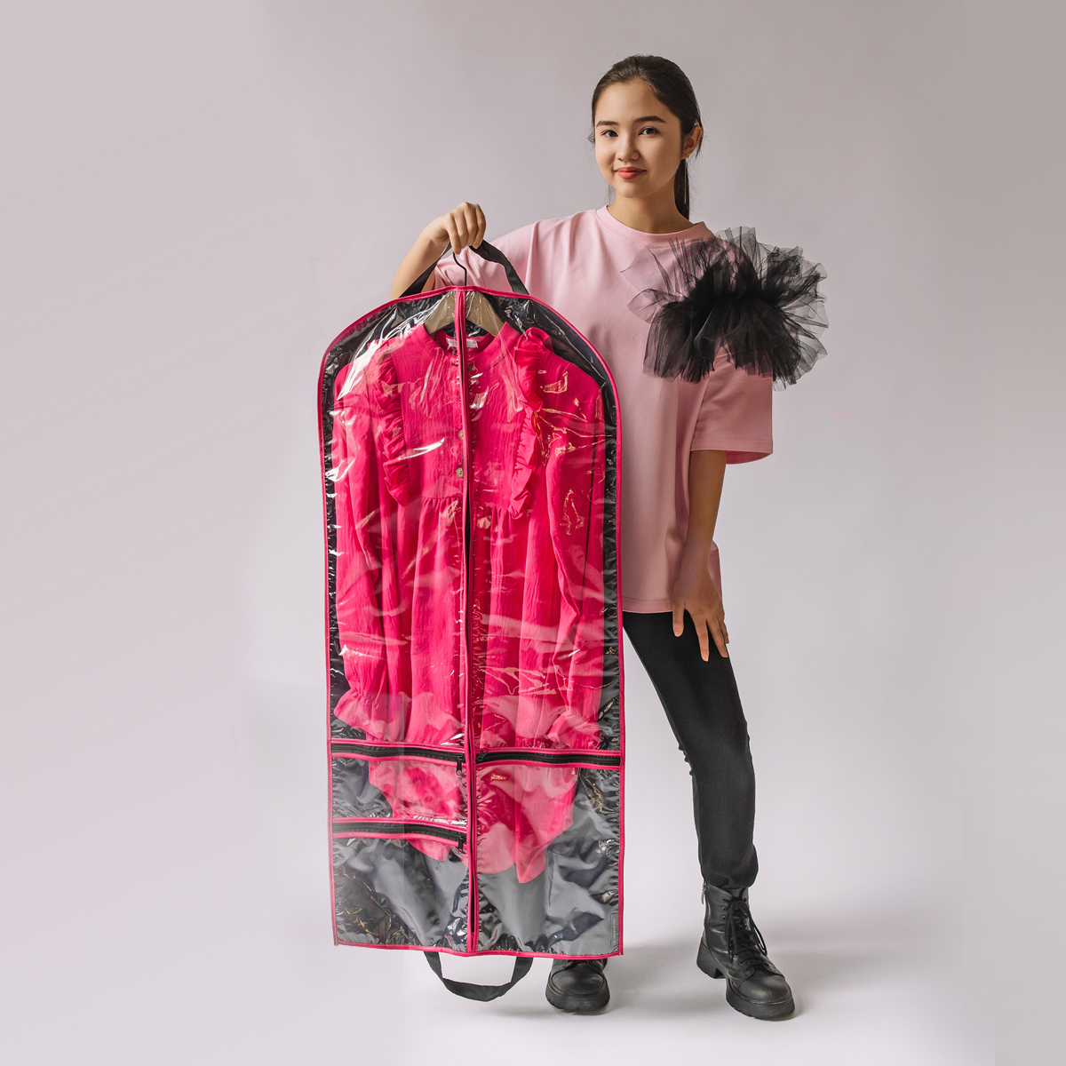 Благодаря прочным ручкам и петле внизу чехол удобно носить с собой: нижняя часть фиксируется на плечиках, не провисает и сохраняет форму.