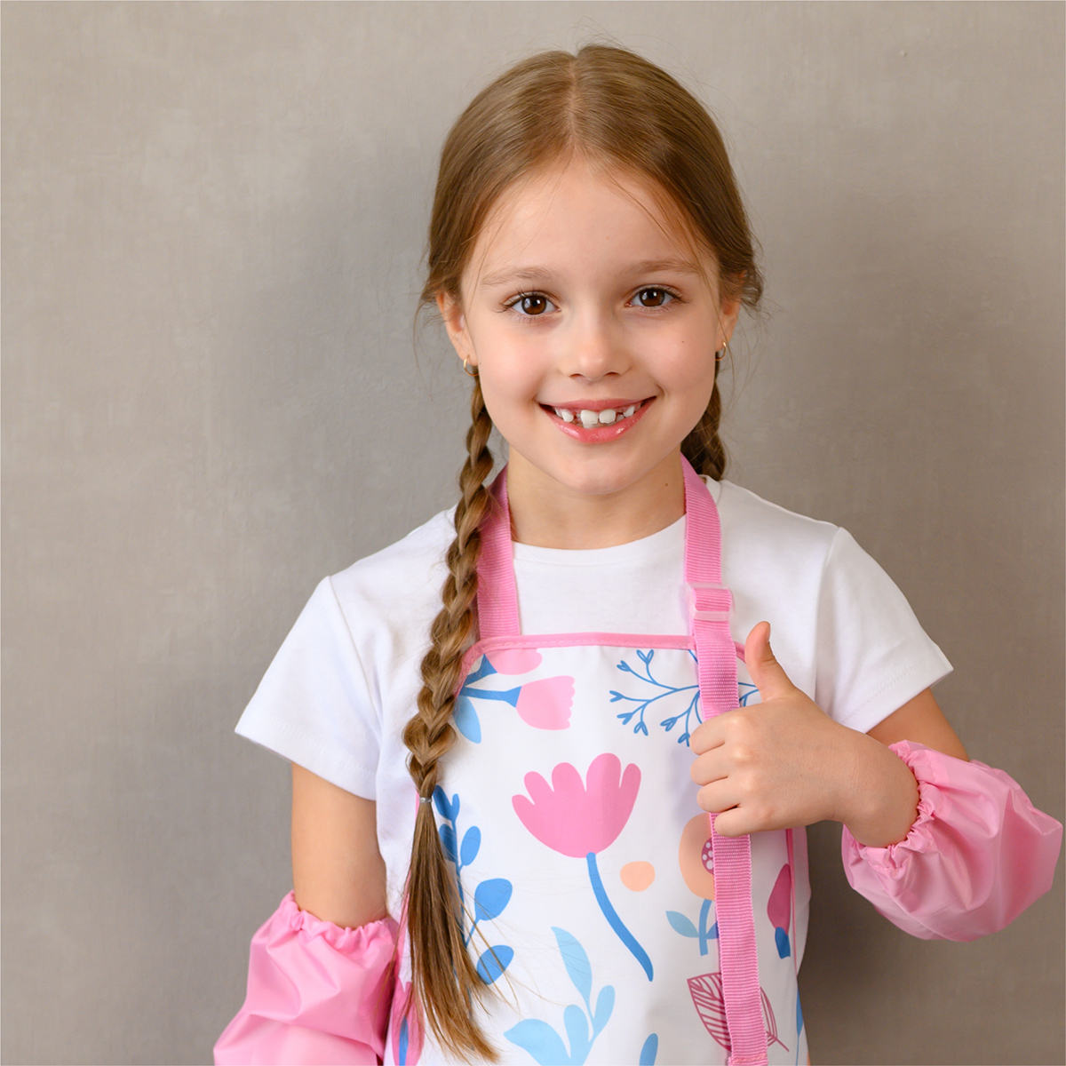 Плотный полиэстер с водоотталкивающим покрытием защищает одежду от красок, теста и глины. Мягкие нарукавники плотно прилегают, не давят и не мешают во время занятий. Яркий авторский дизайн поднимает настроение и вдохновляет на новые творческие открытия.
