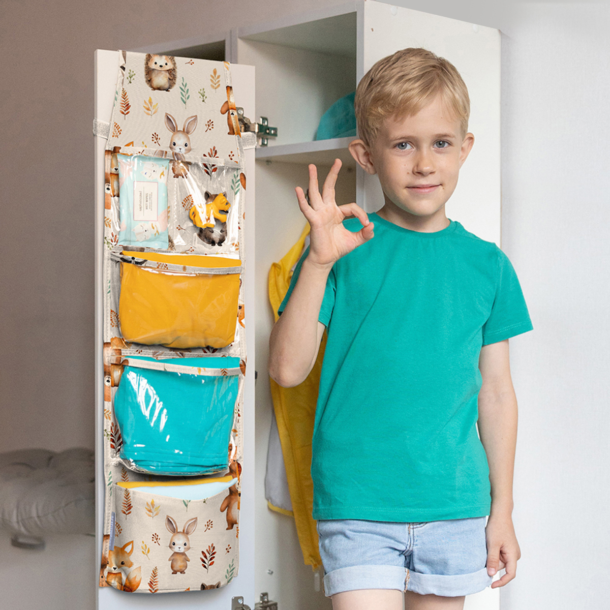 - Органайзер с 5 отделениями и карманом для фото или имени, крепление на резинку и петли