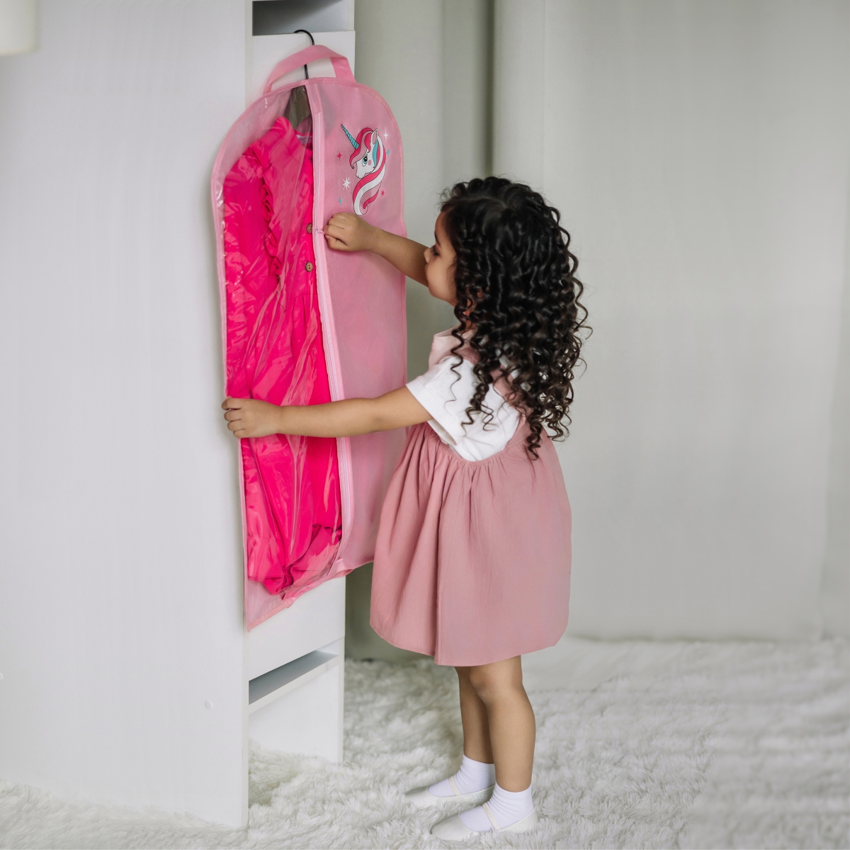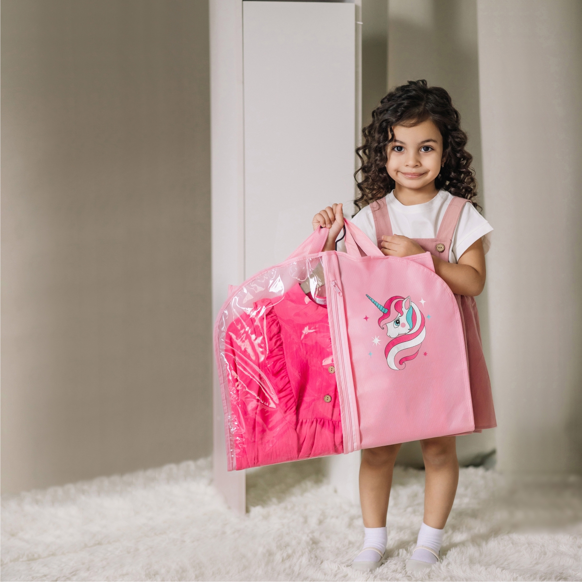 Чехол из лёгкого спанбонда защитит одежду от пыли, а прозрачная вставка поможет видеть содержимое. Удобные ручки позволяют переносить вещи без лишних усилий.