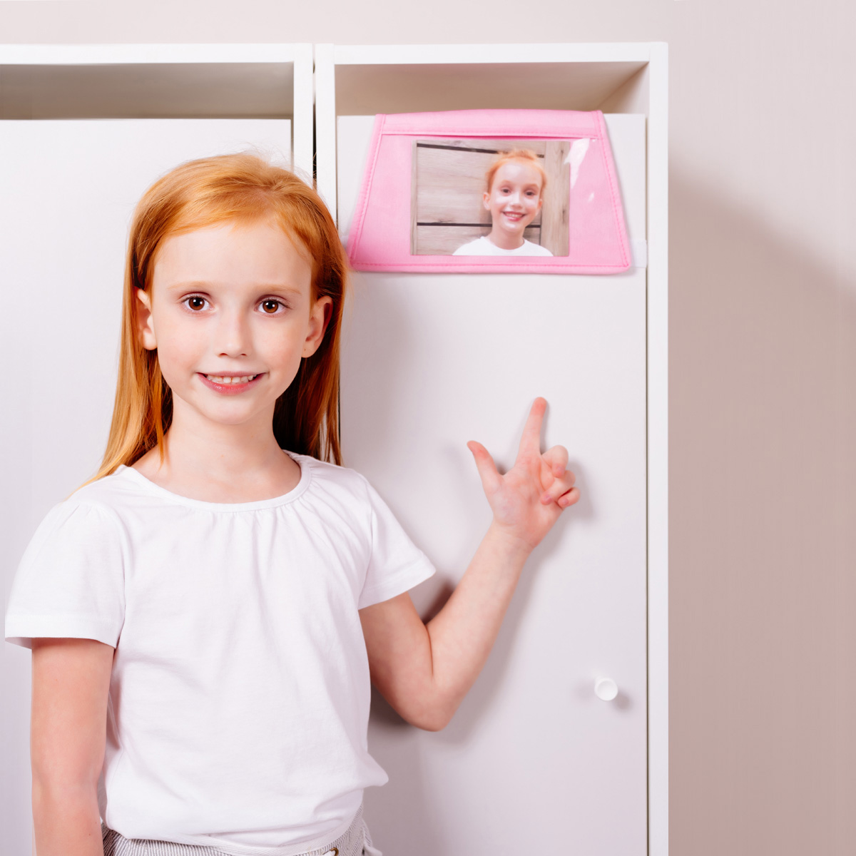 Органайзер помогает поддерживать порядок — 5 вместительных карманов, удобные крепления на липучке и петлях, прозрачный кармашек для фото или имени.