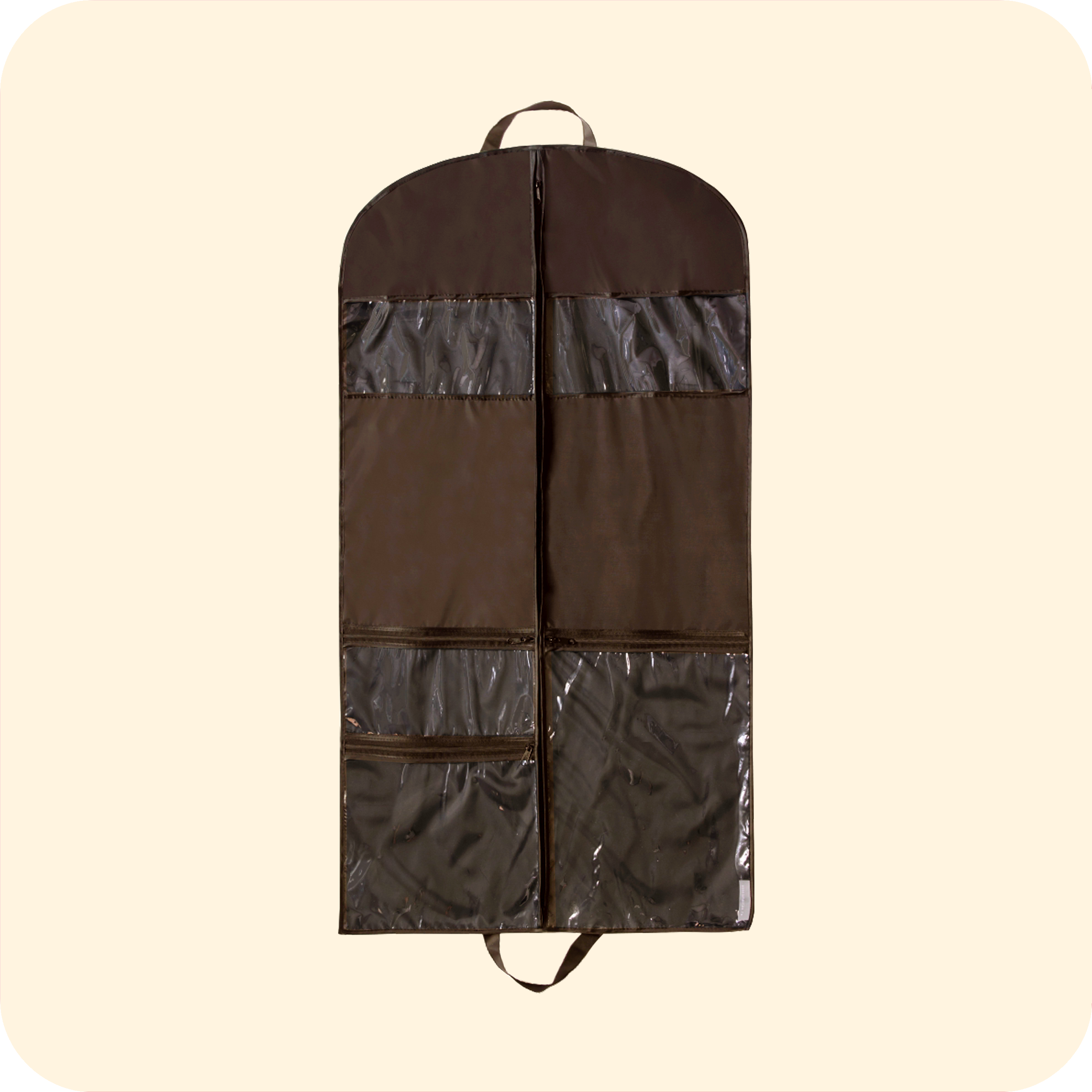 Плотный влагостойкий материал надёжно защищает одежду от пыли, влаги и загрязнений, сохраняя её в идеальном состоянии. Благодаря двум ручкам по краям чехол удобно складывается и превращается в компактную сумку — удобно брать в поездку или командировку. Внизу предусмотрена петля для фиксации плечиков: одежда не провисает и не смещается при переноске.