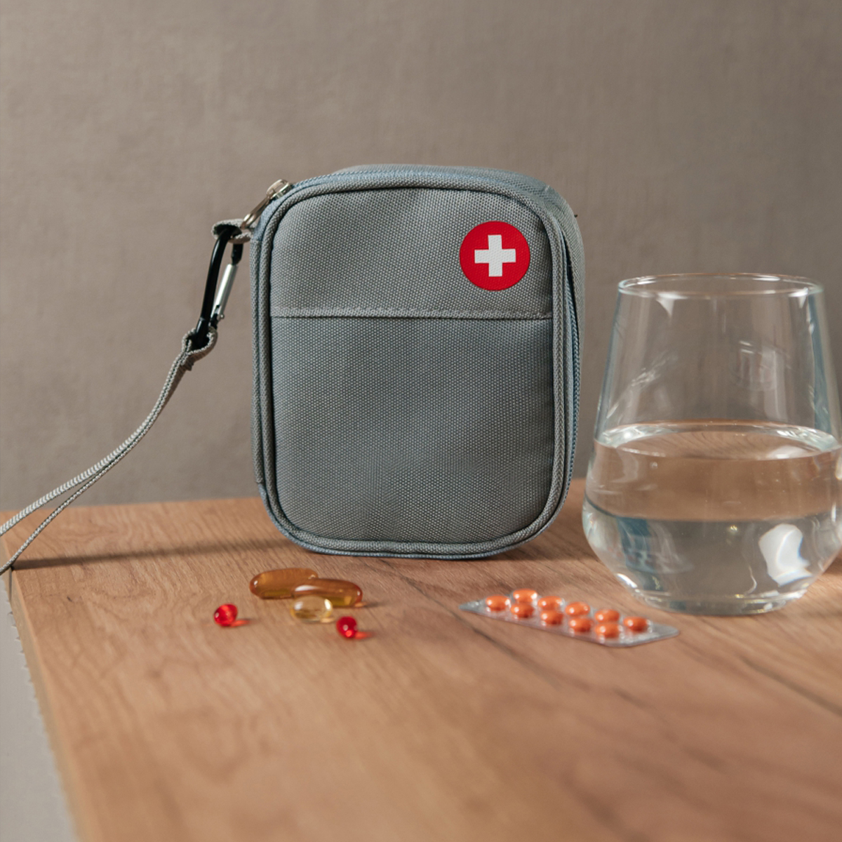 Карманная аптечка — идеальный помощник для тех, кто любит держать всё под рукой. Подойдёт для прогулок, школьных поездок, экскурсий или для того, чтобы отправить ребёнка в лагерь. Несмотря на небольшой размер, она вмещает базовый набор лекарств, а при необходимости легко крепится к рюкзаку с помощью карабина.